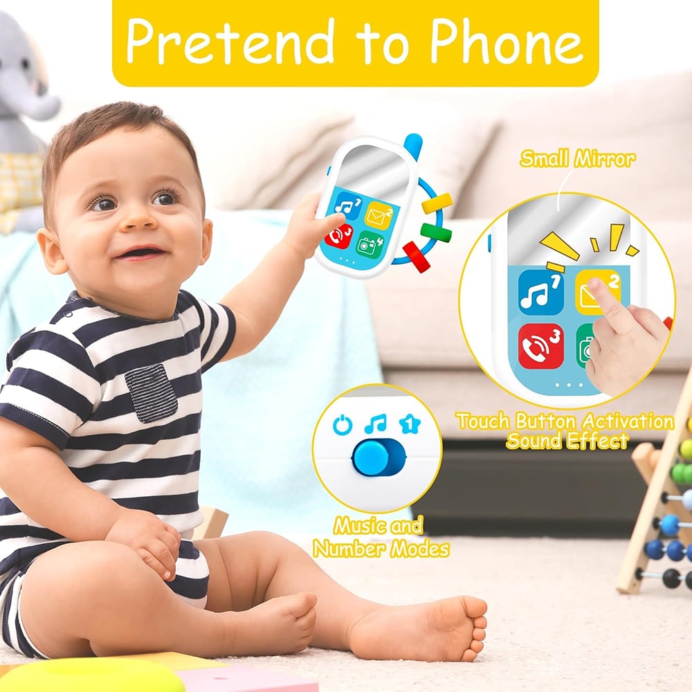 وجود 15 ملودی، صدای پیام، زنگ تلفن و شاتر دوربین، تنوع صوتی بالایی ایجاد میکند. کودک با شنیدن این صداها، توجه بیشتری نشان میدهد و مهارت شنیداری او تقویت میشود. تلفن همچنین اعداد 1 تا 4 را به زبان انگلیسی آموزش میدهد و به یادگیری اولیه زبان کمک میکند.