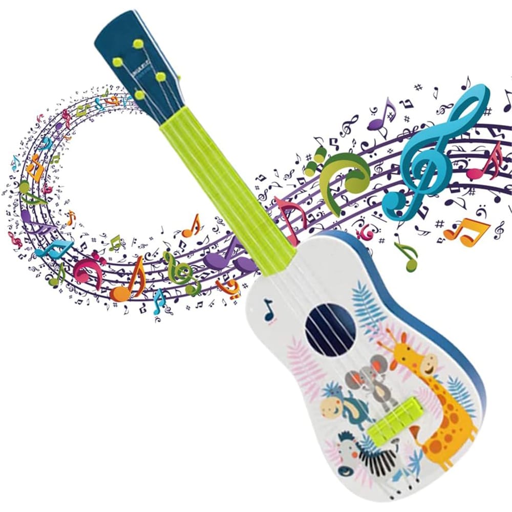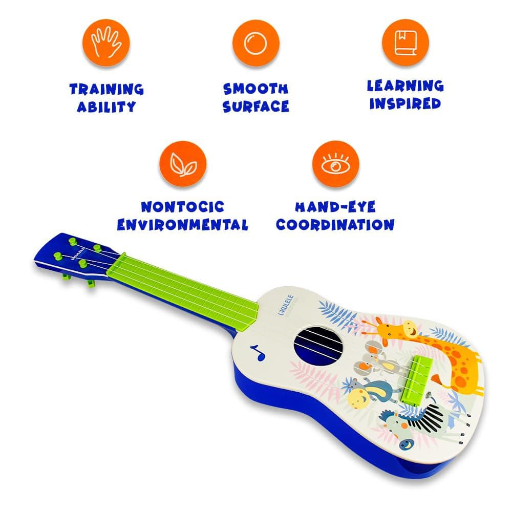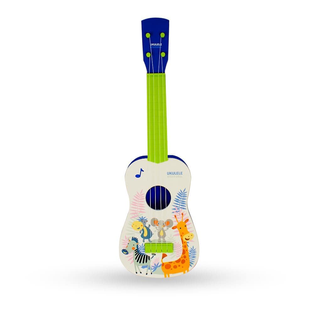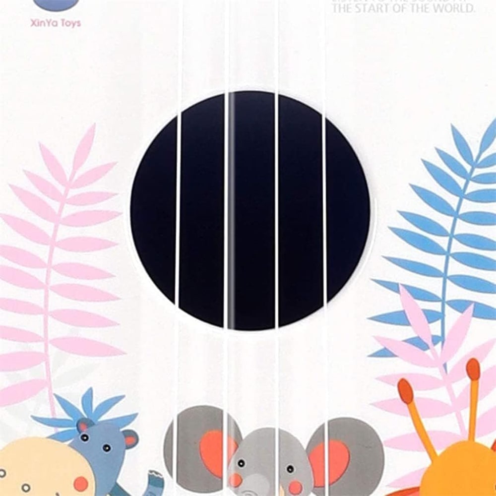 بدنه رنگارنگ با طرحهای کارتونی حیوانات (مانند زرافه، فیل و گورخر) جذابیت خاصی به گیتار آموزشی داده و باعث جلب توجه کودکان میشود. این یوکللی آموزشی علاوه بر جنبه تفریحی، نقش مهمی در تقویت هوش شنیداری، تمرکز و هماهنگی بین چشم و دست با گیتار آموزشی ایفا میکند.