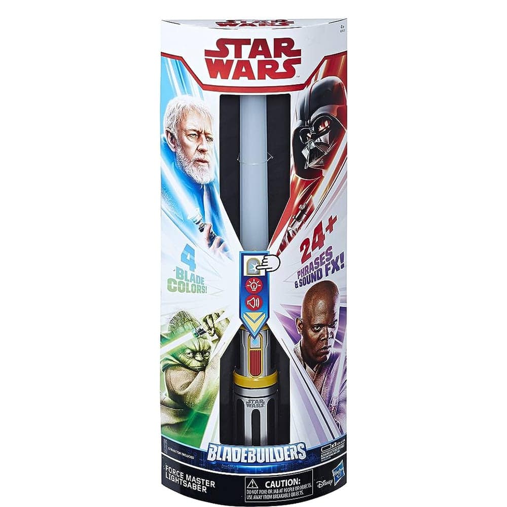 دارای 4 رنگ متغییر و بیش از 24 عبارت، شمشیر در حالت باز شده حدود ۸۰ تا یک سانتی متر ارتفاع خواهد داشت. کودک شما با شمشیر Master Bladebuilders Force Master Wars در دنیایی پر از قهرمانان، تبهکاران و موجودات فضایی غوطهور می شود. این شمشیر فوقالعاده با جزئیات فراوان و مشابه به نمونهی اصلی آن در فیلم طراحی شده است. اگر سلاح دیگری داشته باشید از لاین Blade builders میتوانید با این مجموعه سلاح جدید تولید کنید. این محصول برای کودکان بالای 5 سال مناسب است.