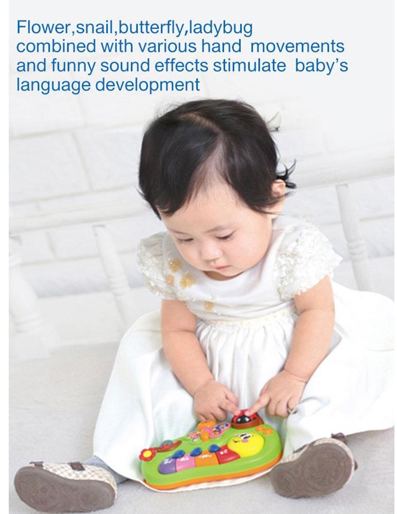 آشنایی با لوازم موسیقی: کلیدهای پیانو و افکتهای صوتی کودک را با دنیای موسیقی آشنا میکنند و مهارتهای موسیقی اولیه را پرورش میدهند.