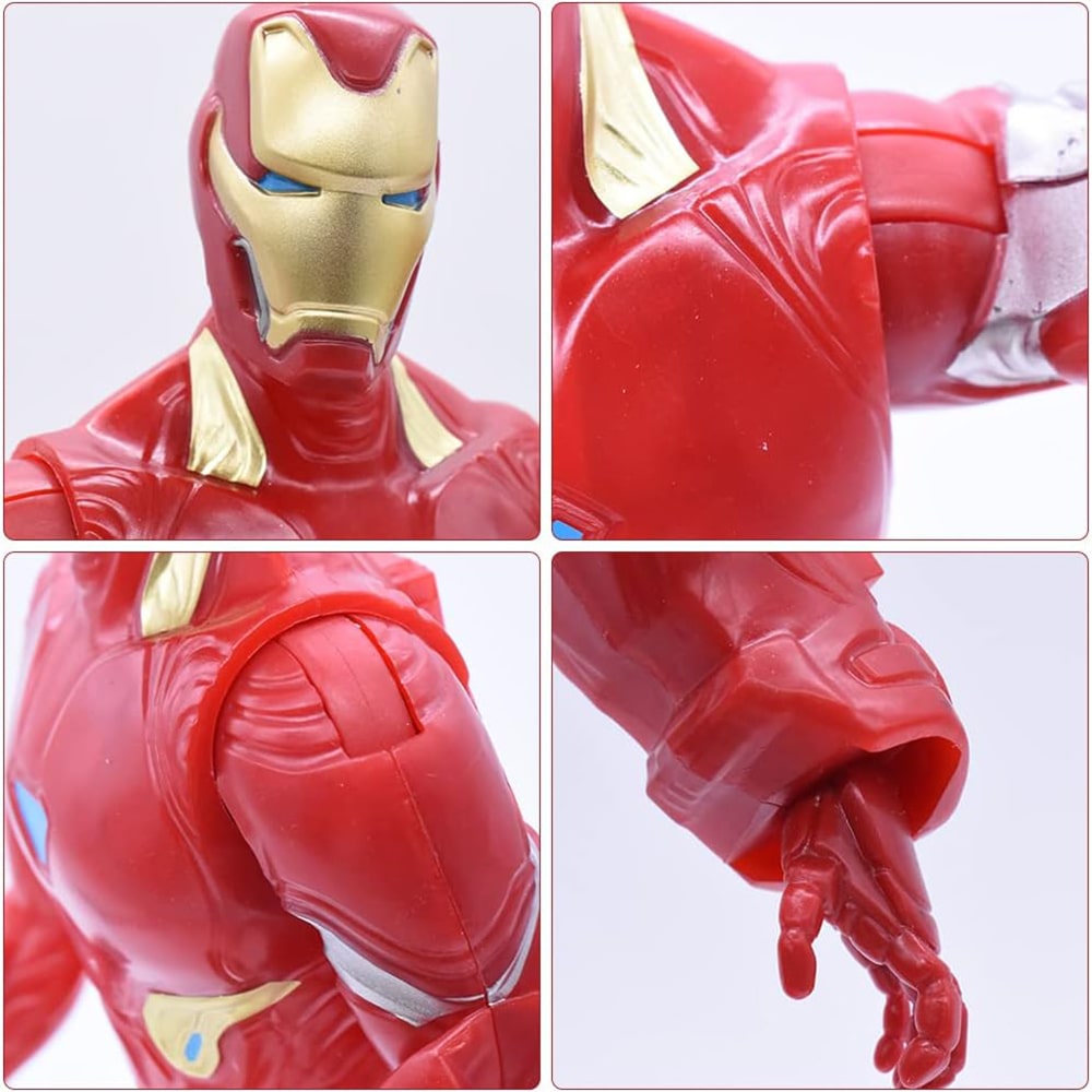 این فیگور 30 سانتیمتری از پلاستیک PVC باکیفیت ساخته شده و هیچگونه مواد سمی یا شیمیایی در آن استفاده نشده است. مفاصل متحرک در دستها، پاها و سر، امکان ژستگیری متنوع را فراهم میکند. طراحی چهره و زره آیرون من کاملا مطابق نسخههای مارول انجام شده و برای کودکان بسیار جذاب است.