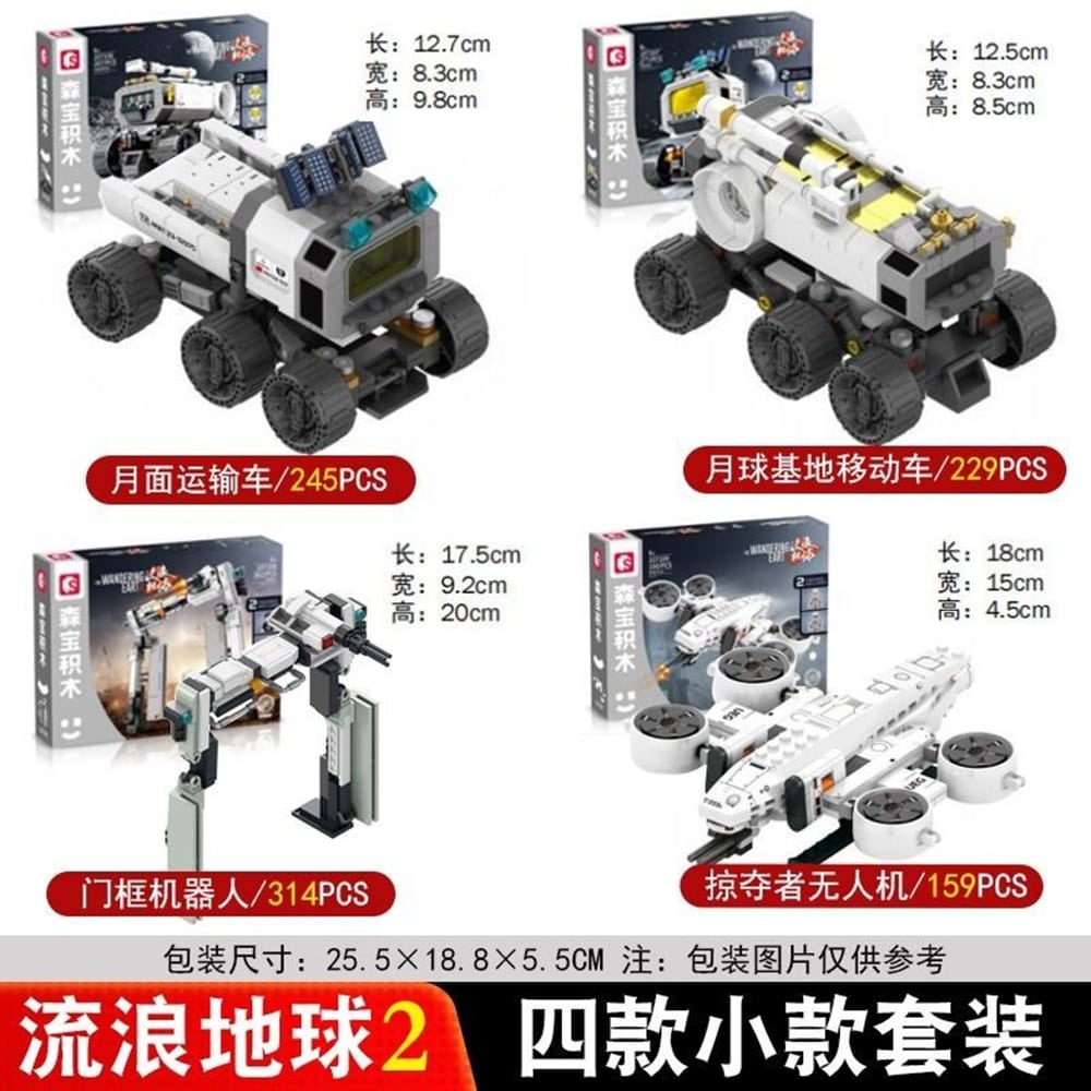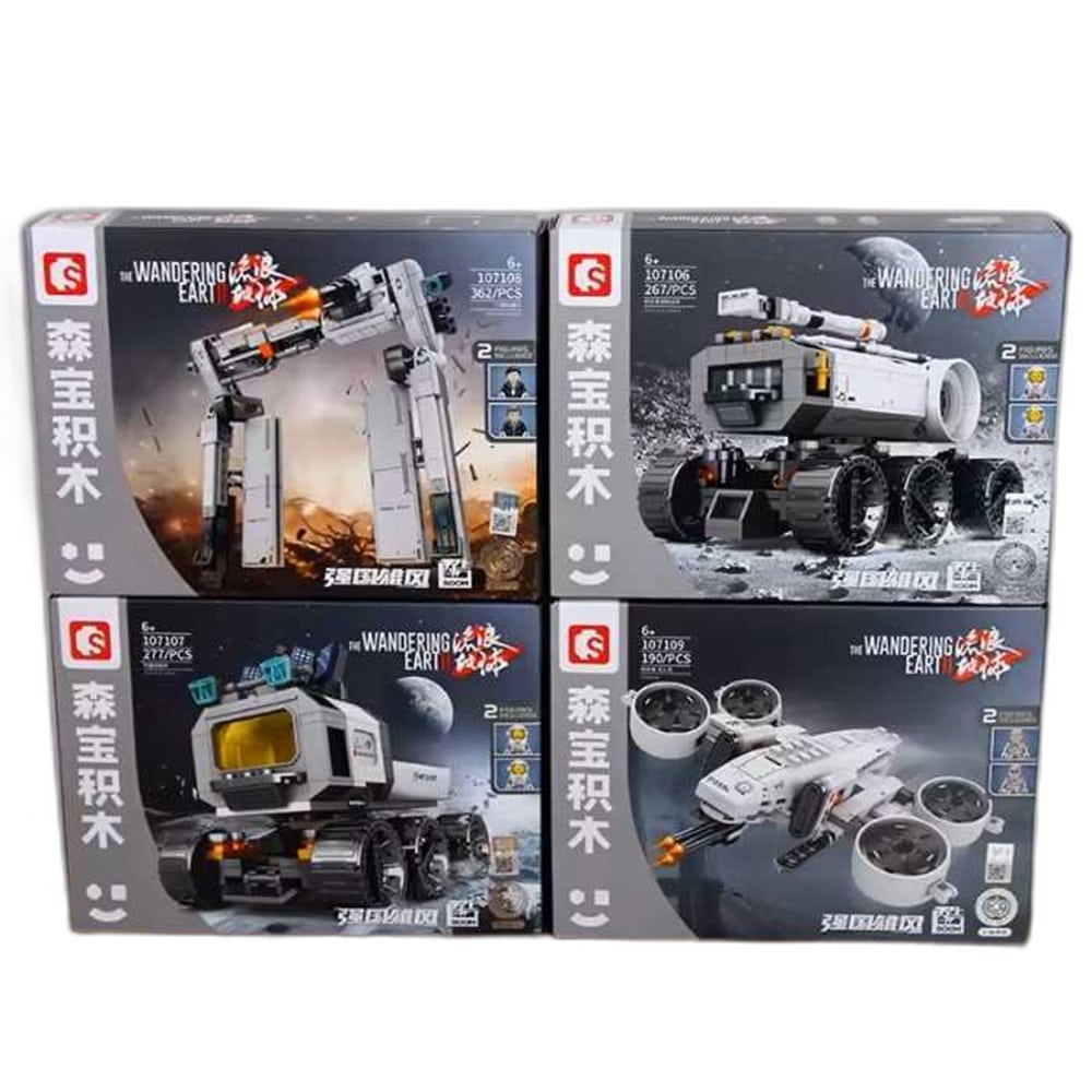 لگو سمبو 9-107106-The Wandering Earth 2 با الهام از فیلم علمیتخیلی «زمین سرگردان 2» طراحی شدهاند و مجموعهای چهارگانه از سازههای فضایی و رباتیک را شامل میشوند. این بلوک های ساختنی از جنس ABS تولید شدهاند و کیفیت ساخت مطلوبی دارند.